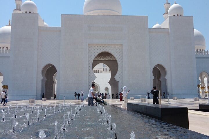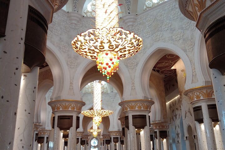 Ferrari World ( outside ),, Sheikh Zayed Grand Mosque ,, Emirates Palace hotel ( outside ),, Corniche road skylines ,, Choose your lunch break at any place you like .